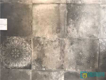 仿古磚依然是本屆展會的主力軍,在產品設計方面除了常見的砂巖、理石、水泥、木紋,更融入了織物、布藝等元素,韻味十足。如費羅娜水泥磚推出了“ZHI”新品,道迅瓷磚展示了牛仔布瓷磚。